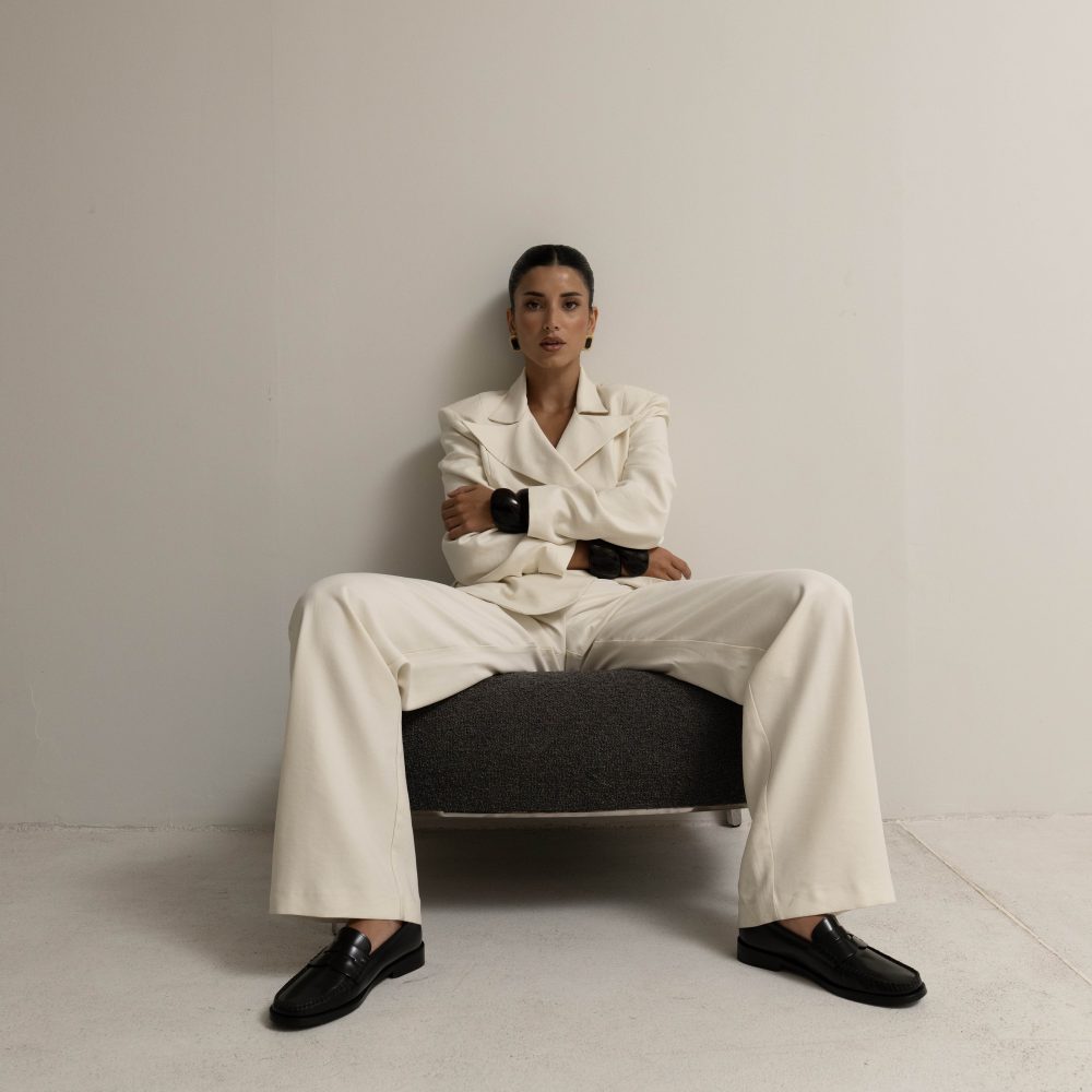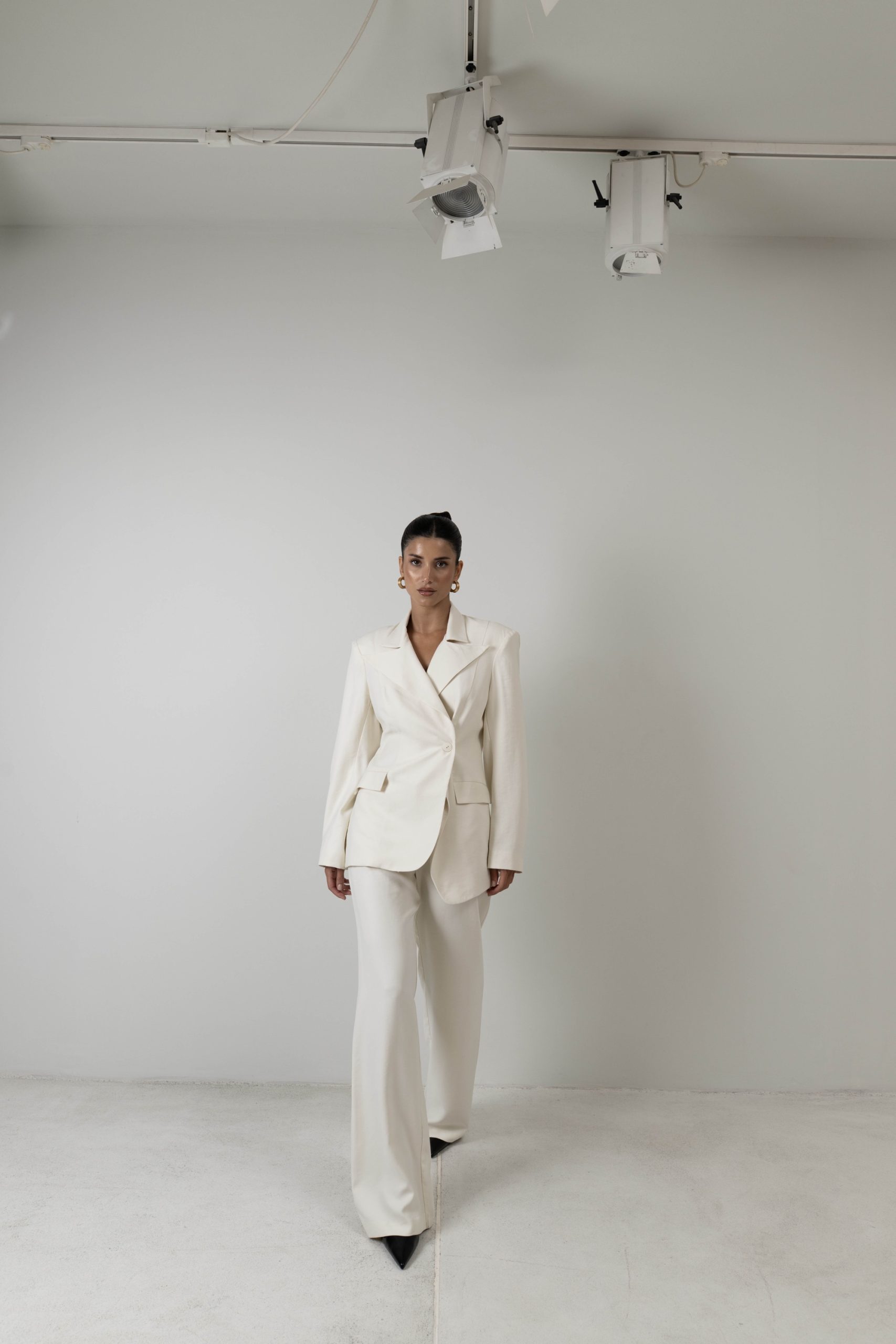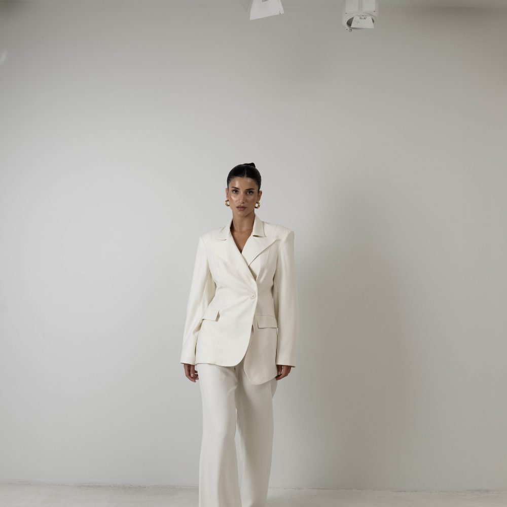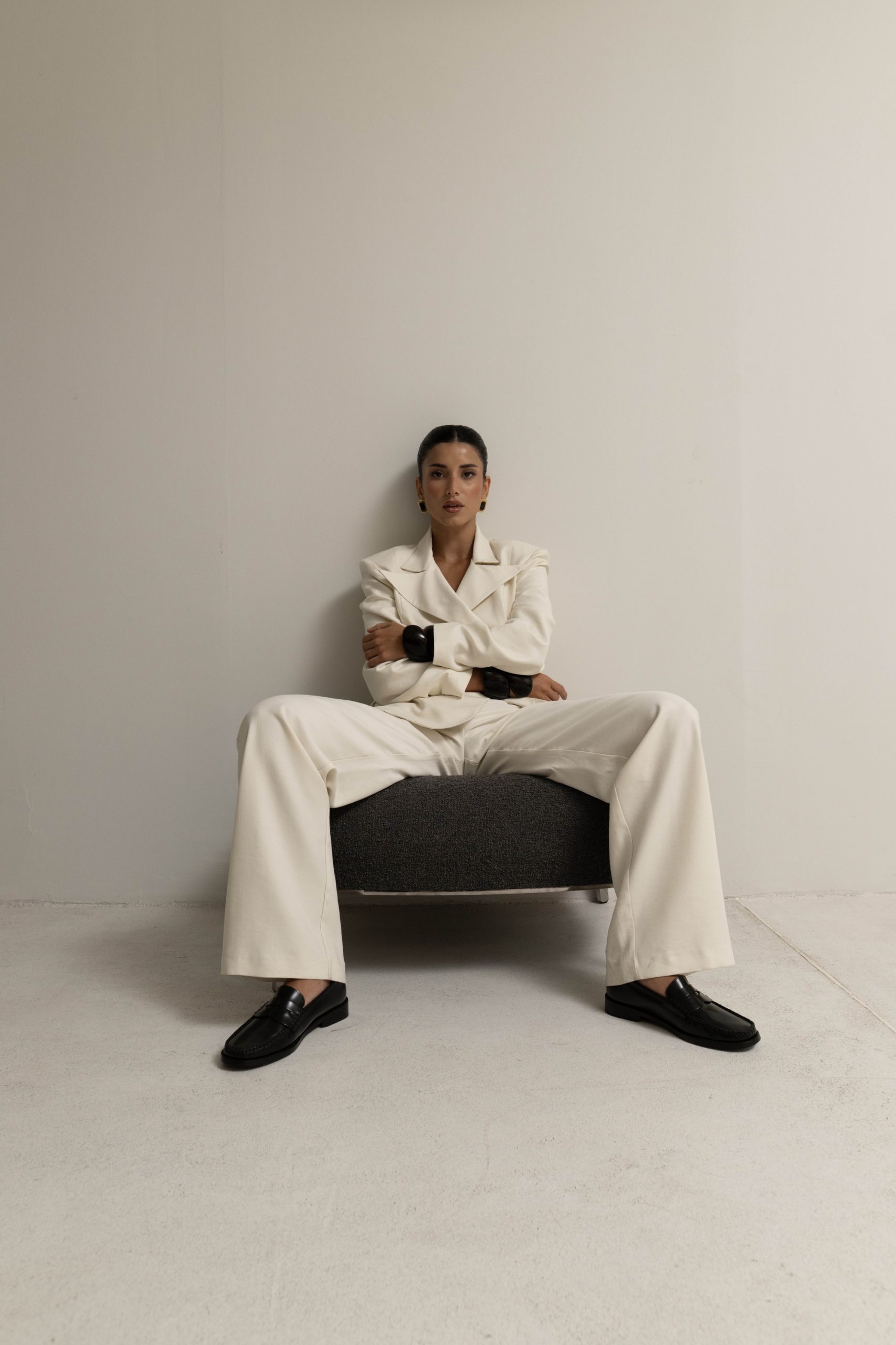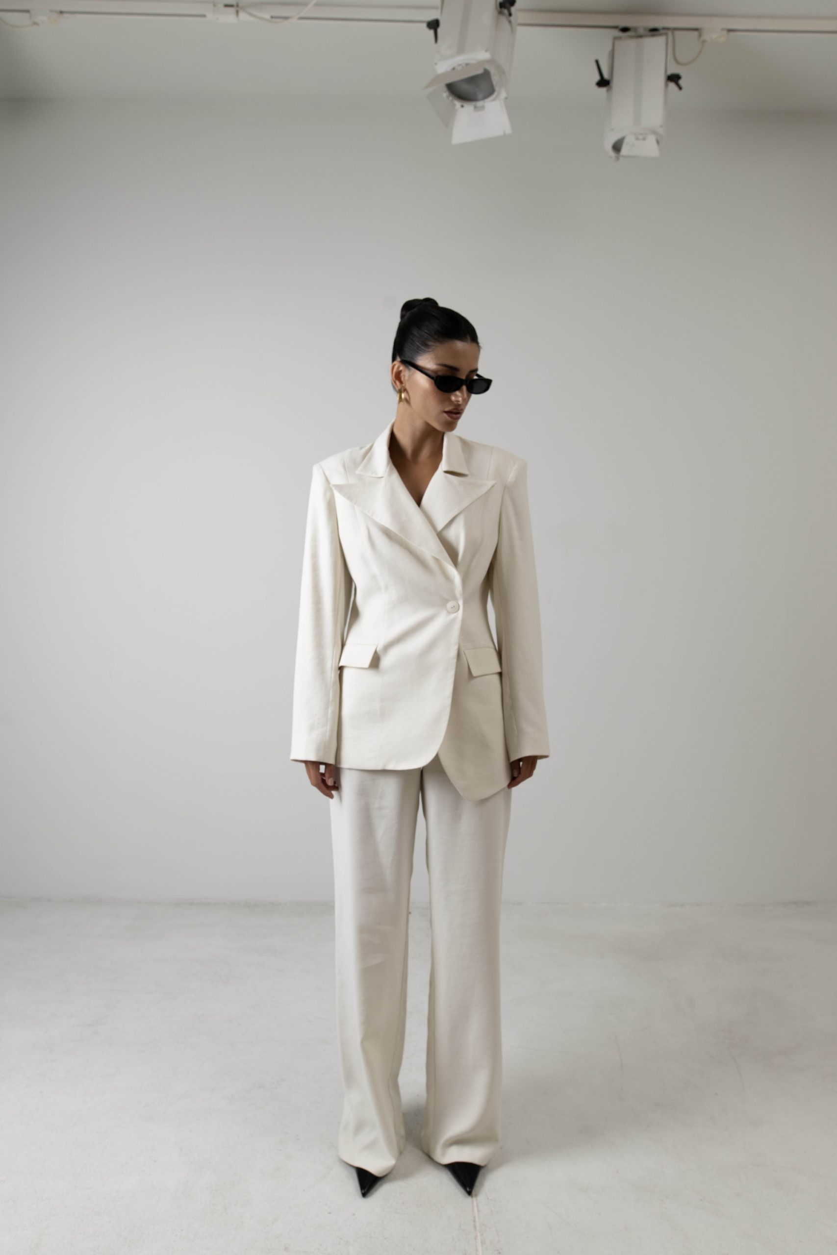 Παντελόνι από ανάλαφρο ύφασμα με ψηλόμεση εφαρμογή και φαρδιά γραμμή.