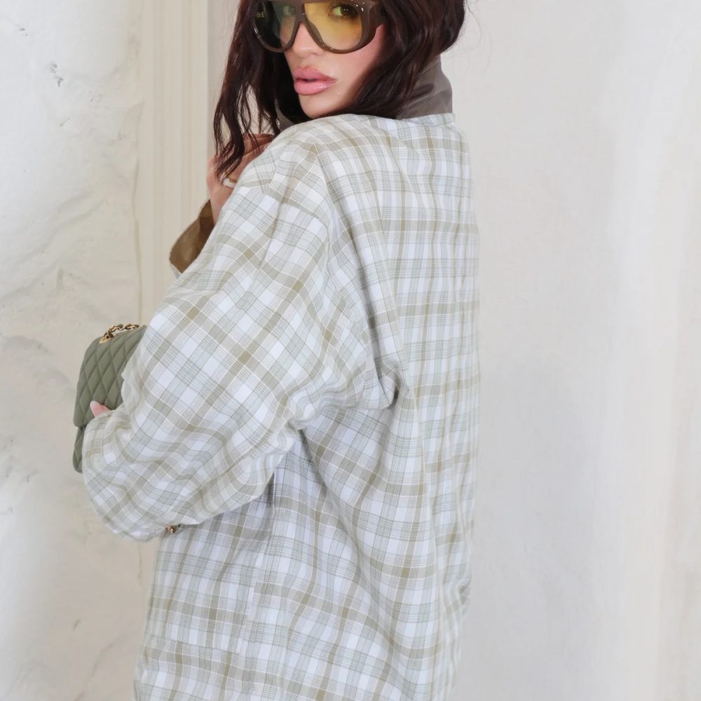 Jacket ανοιξιάτικο που φοριέται και από τις 2 όψεις .Μπεζ από τη μία και καρό από την άλλη. Άνετη εφαρμογή . Διαθέσιμο σε SMALL & MEDIUM.